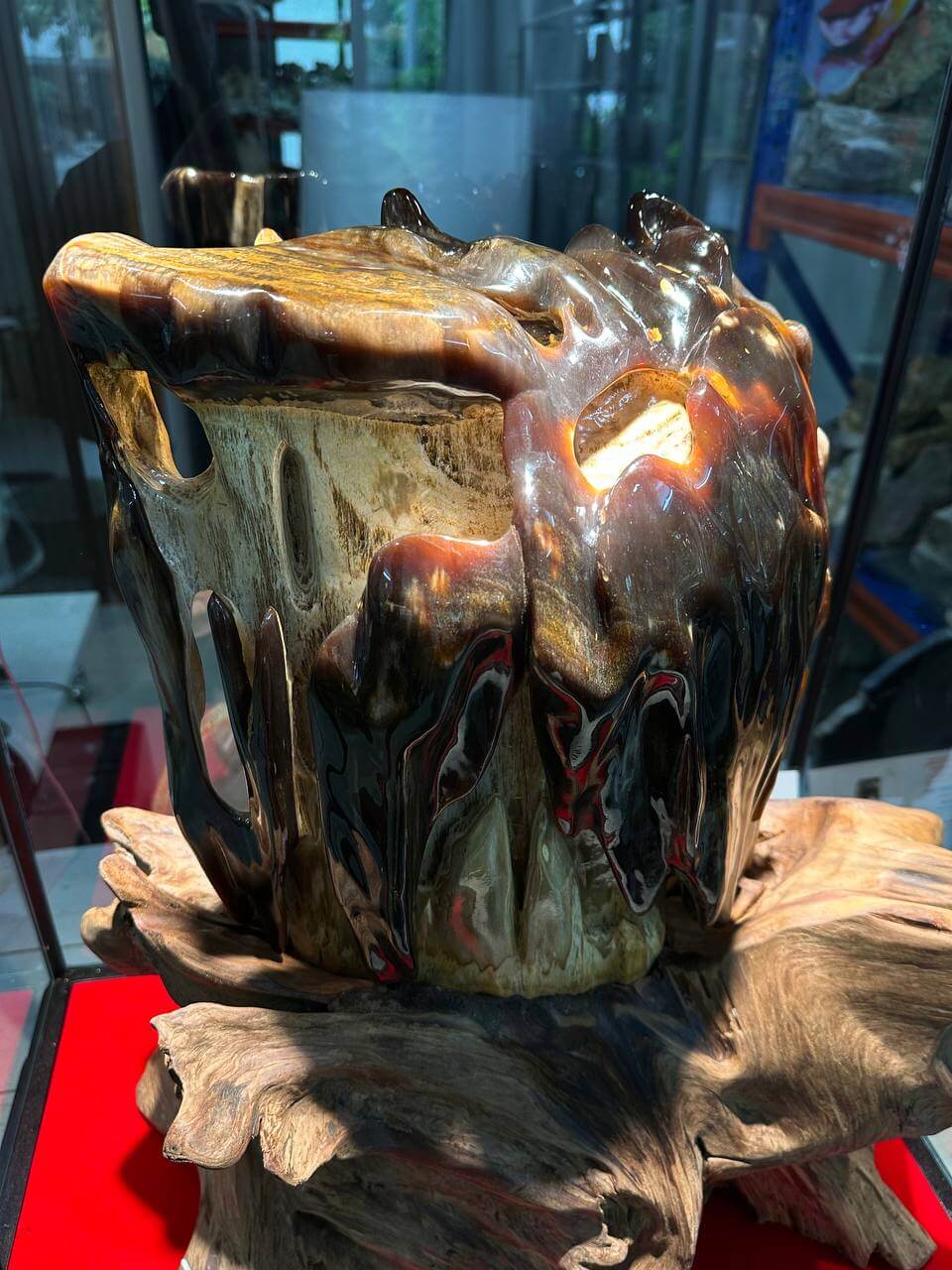 Mỗi khối Gỗ Hóa Ngọc đều mang vân gỗ nguyên bản cùng sắc ngọc tự nhiên, vừa cổ điển, vừa sang trọng. Đặc biệt, khi được đặt trên đế gỗ quý – như gỗ hương, gụ hoặc cẩm lai – sản phẩm trở nên hoàn mỹ, vừa giữ được tính tự nhiên, vừa tôn lên nét uy nghi của vật phẩm sưu tầm cao cấp.