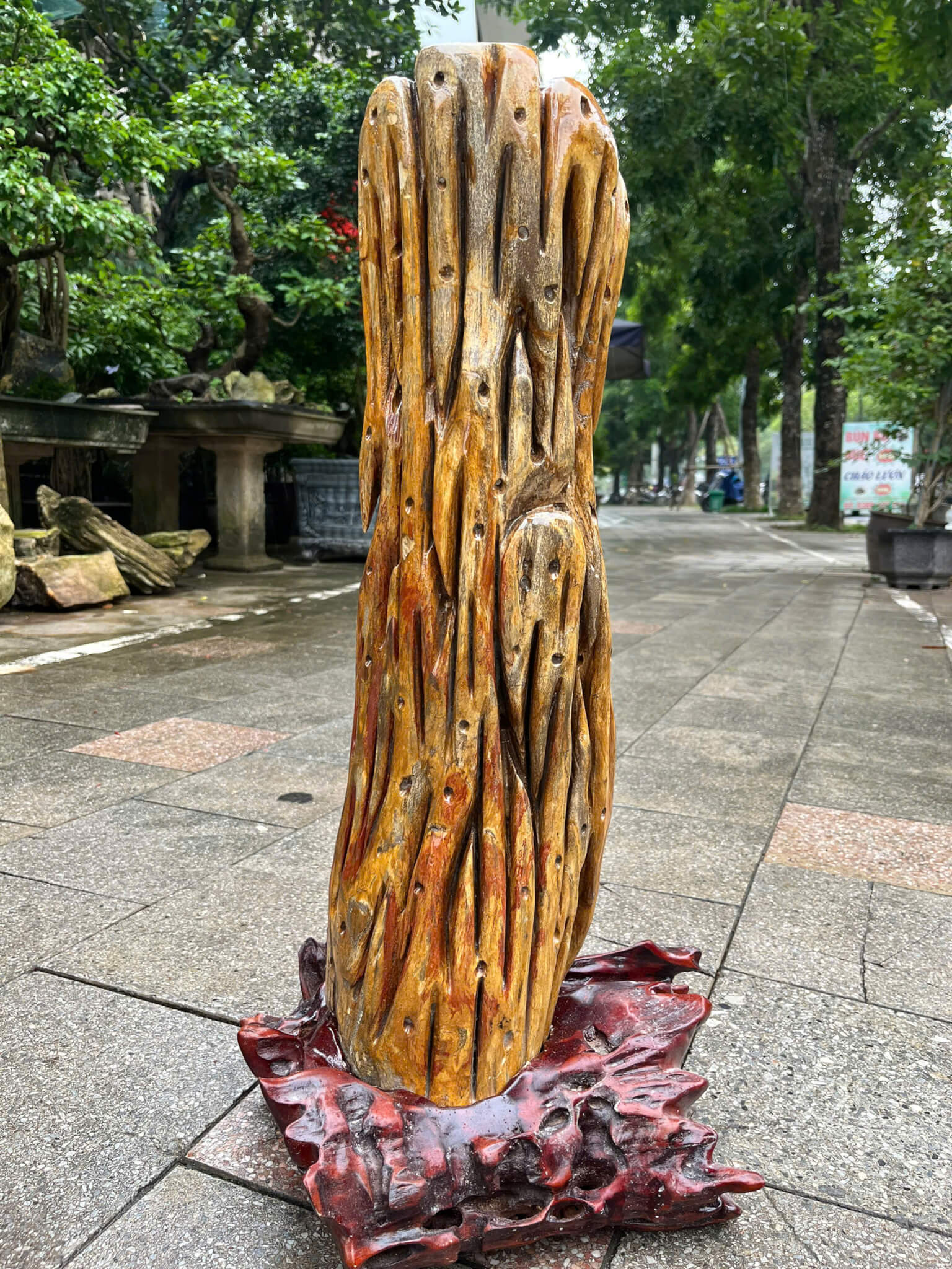 - **Phối Đế Nghệ Thuật:** Thiết kế đế gỗ quý (hoặc đế đá) phù hợp với từng dáng khối, tăng thêm sự uy nghi và giá trị thẩm mỹ.