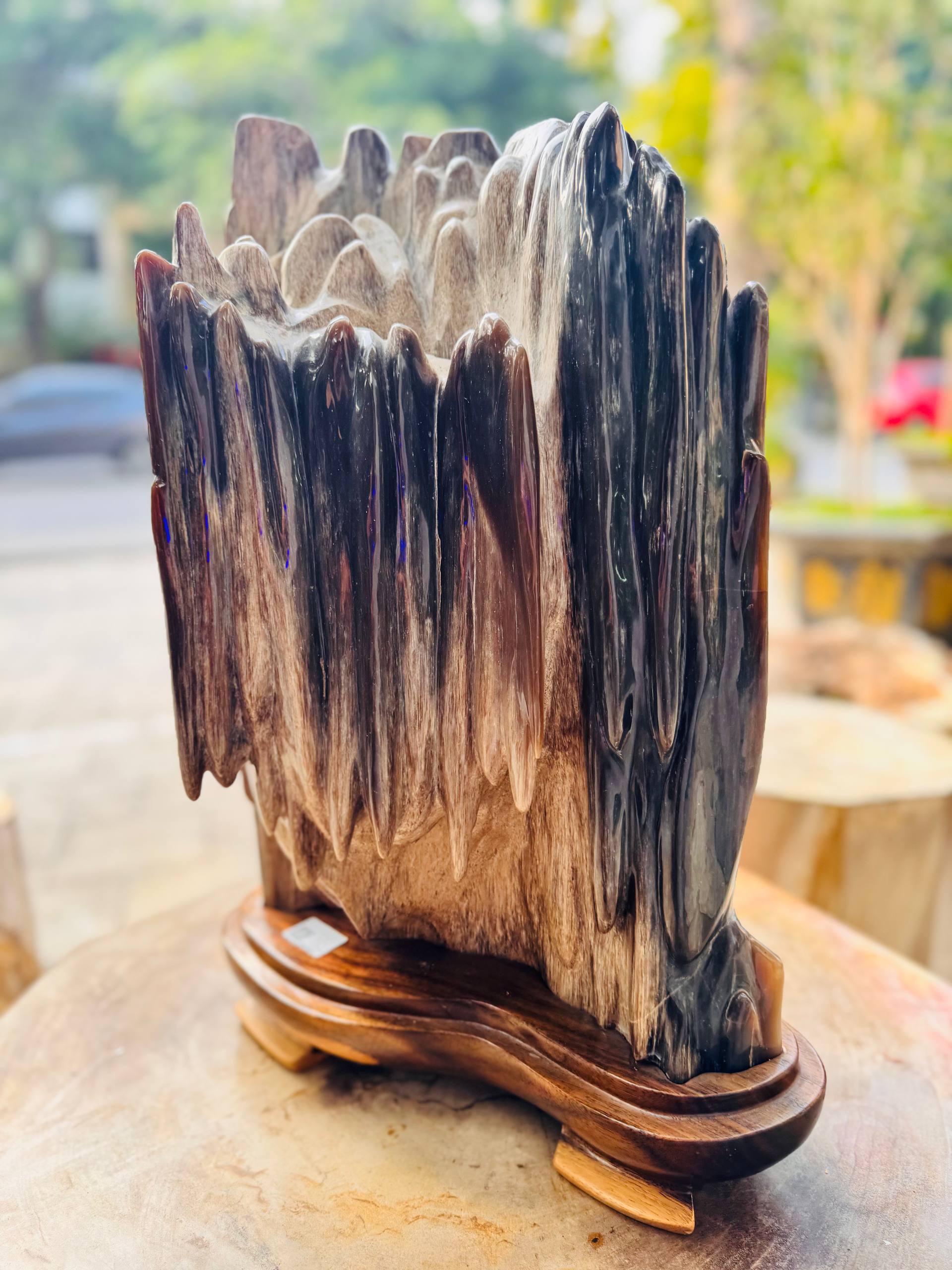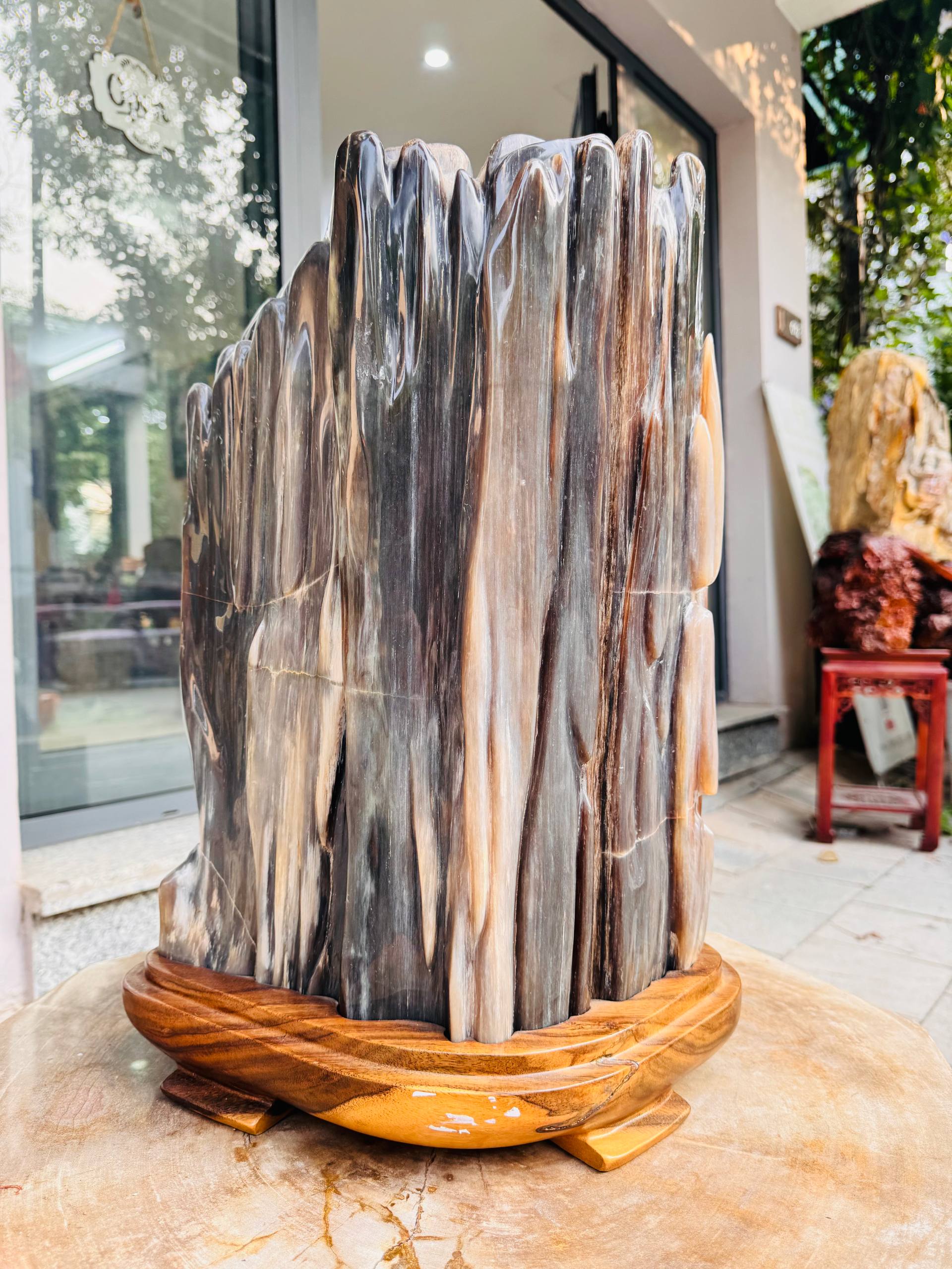 | Điểm nổi bật | Dáng trụ uy nghiêm, vân dọc thạch anh đa sắc, thớ gỗ đã hóa ngọc mịn màng |