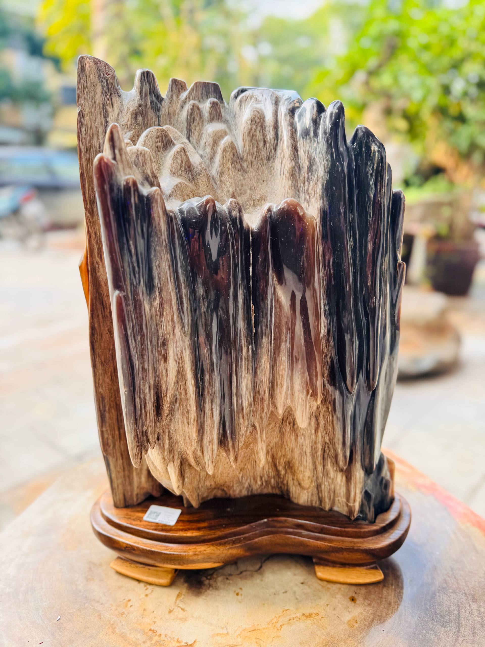 Gỗ Hóa Thạch No.651 là một kiệt tác phong thủy hội tụ tinh hoa của lòng đất qua hàng triệu năm. Với vóc dáng trụ đứng vững chãi và hệ vân dọc đặc trưng, tác phẩm này không chỉ mang giá trị thẩm mỹ đỉnh cao mà còn là biểu tượng của sự trường tồn và thịnh vượng. Đây là sự lựa chọn ưu tiên của những nhà sưu tầm đá cảnh tại Mộc Ngọc.